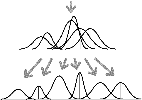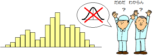 | 例えば、ある特性のヒストグラムを取ったところ、 このような見たことのないデコボコの分布になってしまいました。 |