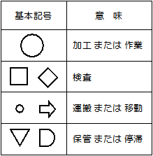 | 工程分析というIEの基礎手法があります。 生産の流れをフローチャートに表現して問題点を見やすくする手法で、いくつかのバリエーションがあります。その中で最もよく使われるのが製品工程分析と作業者工程分析です。 |