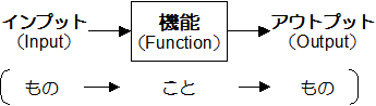 インプットは変化前の「もの」 機能は変化させる「こと」 アウトプットは変化後の「もの」 と考えるとわかりやすいでしょう。 |